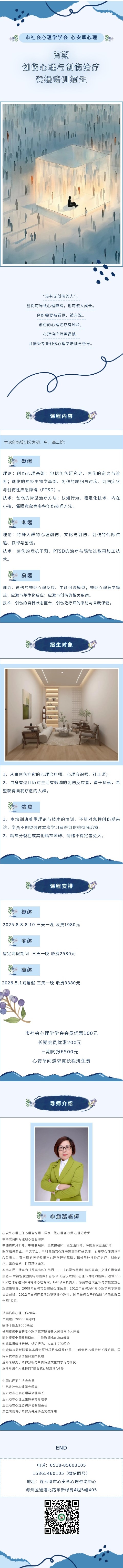 市社会心理学学会 心安草心理 首期创伤心理与创伤治疗实操培训招生