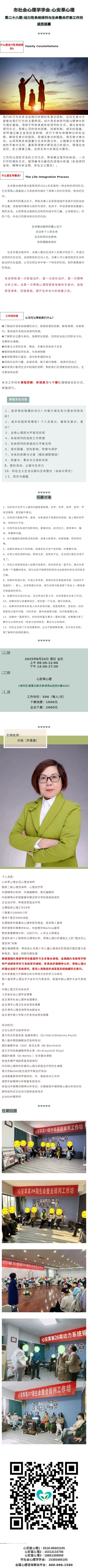 市社会心理学学会 心安草心理第二十八期 动力性系统排列与生命整合疗愈工作坊成员招募